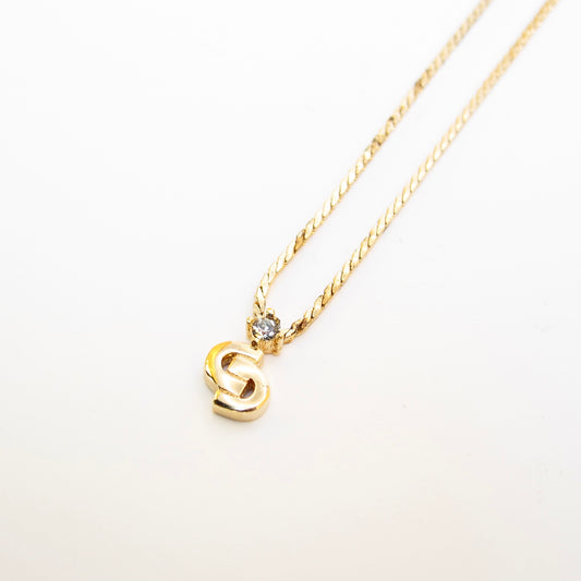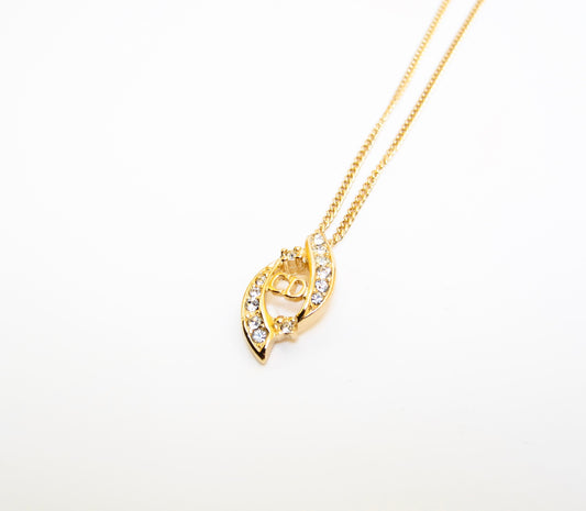 Christian Dior Vintage CD Logo and Rhinestone Golden Necklace