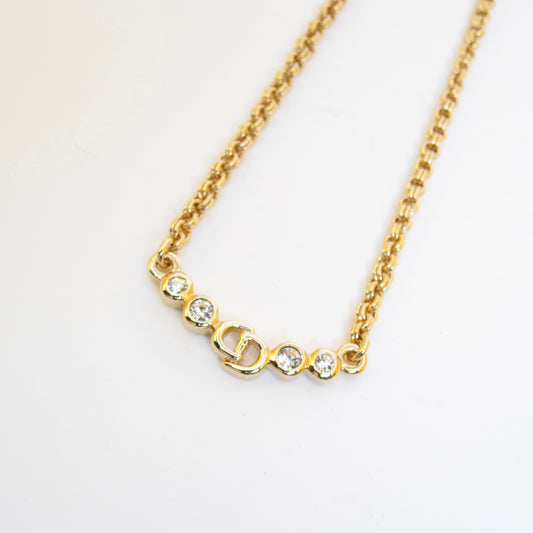 Christian Dior Vintage CD Logo and Rhinestone Golden Necklace