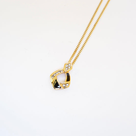 Christian Dior Vintage Black and Rhinestone Golden Necklace