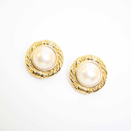 Givenchy Vintage 4G Logo Round Shape Pearl Golden Clip-on Earrings
