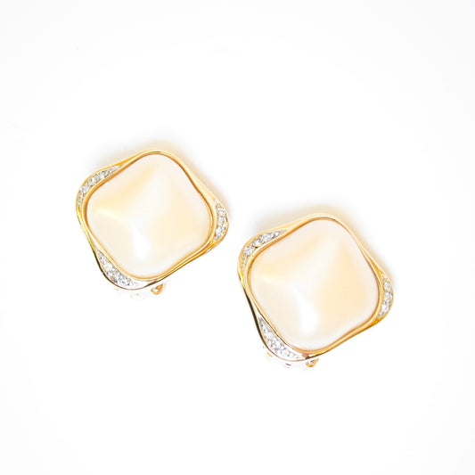 Givenchy Vintage Stylish Pearl and Rhinestone Golden Clip-on Earrings