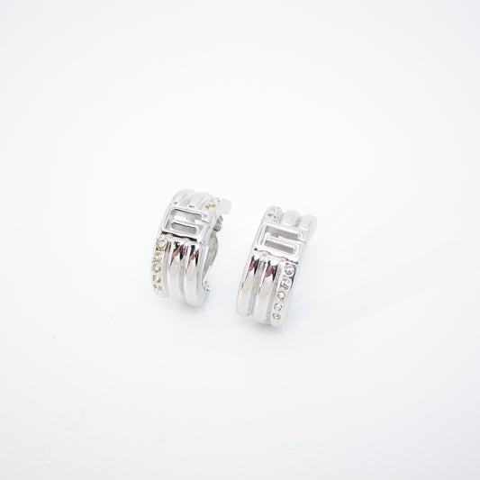 Givenchy Vintage G Logo and Rhinestone Silver Clip-on Earrings