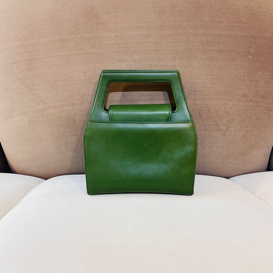 Givenchy Vintage Structured Green Leather Handbag With Medallion Clasp