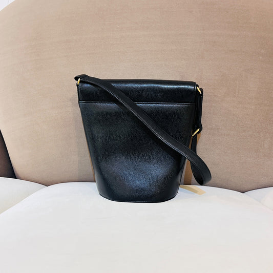 Givenchy Vintage Logo Plaque Black Leather Shoulder Bag