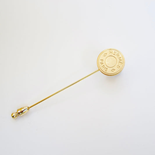 Hermes Vintage Hermes Logo On Round Shape Golden Brooch