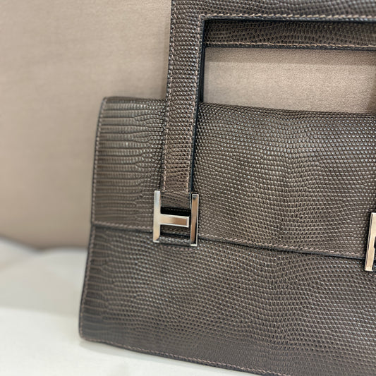 Hermes Vintage Dark Brown 365Pm Handbag In Lizard Leather
