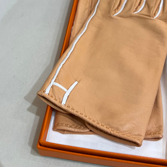 Hermes Orange Color Leather Gloves