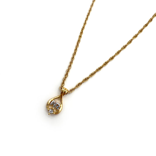 Nina Ricci Vintage Nr Logo With Rhinestone Golden Necklace