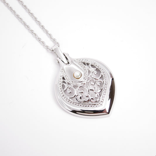 Mikimoto Vintage Akoya Pearl in Heart Silver Necklace
