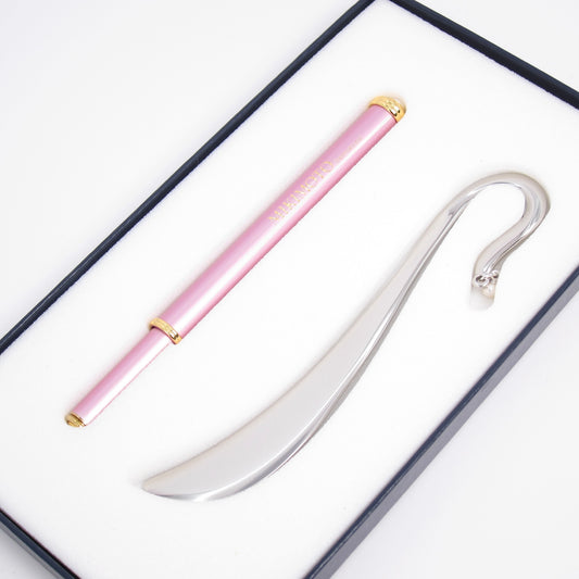 Mikimoto Vintage Pink Ballpoint Pen and Book Mark with Pearl Box Set