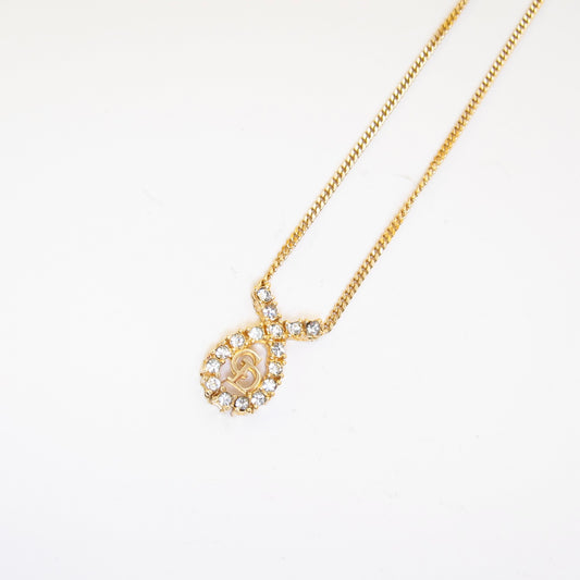 Christian Dior Vintage CD Logo in Drop Shape with Rhinestone Golden Necklace