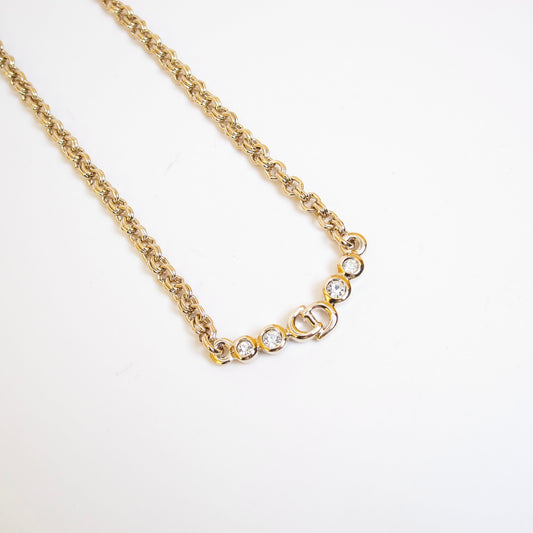 Christian Dior Vintage CD Logo with Rhinestone Golden Necklace