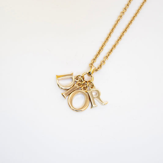 Christian Dior Vintage Dior Letter Charm Golden Necklace