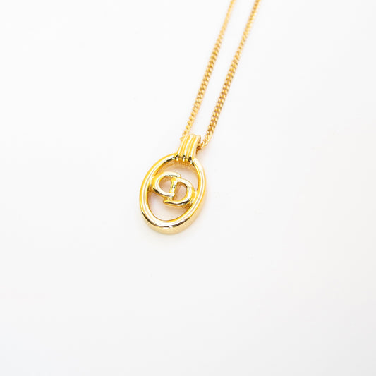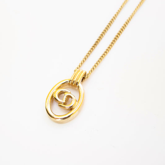 Christian Dior Vintage CD Logo in Oval Shape Golden Necklace