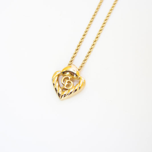 Christian Dior Vintage CD Logo in Heart Shape Golden Necklace