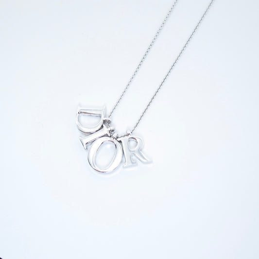 Christian Dior Vintage Dior Logo Letter Charm Silver Necklace