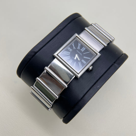 Chanel Vintage Mademoiselle Black Face Stainless Steel Watch