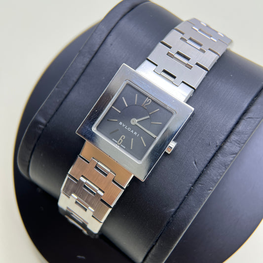 Bvlgari Vintage Cuadrado Square Black Face Stainless Steel Watch