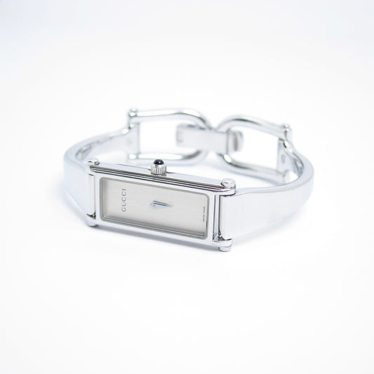 Gucci Vintage Rectangle White Face Silver Bangle Watch