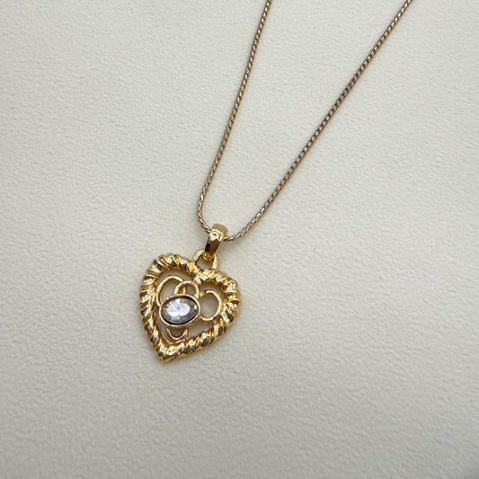 Yves Saint Laurent Vintage Heart Motif with Rhinestone Golden Necklace