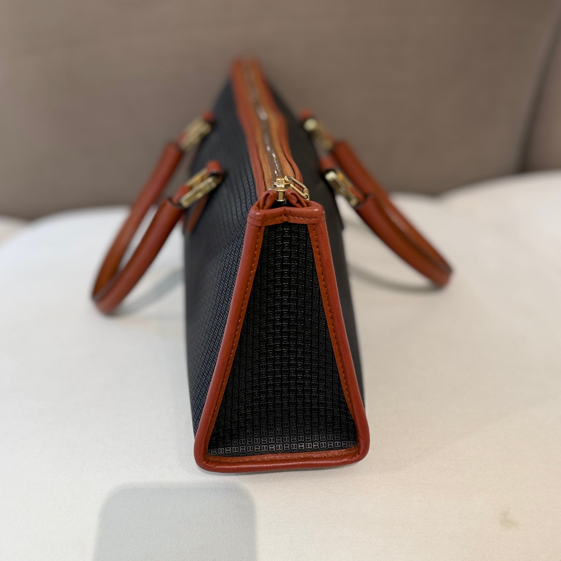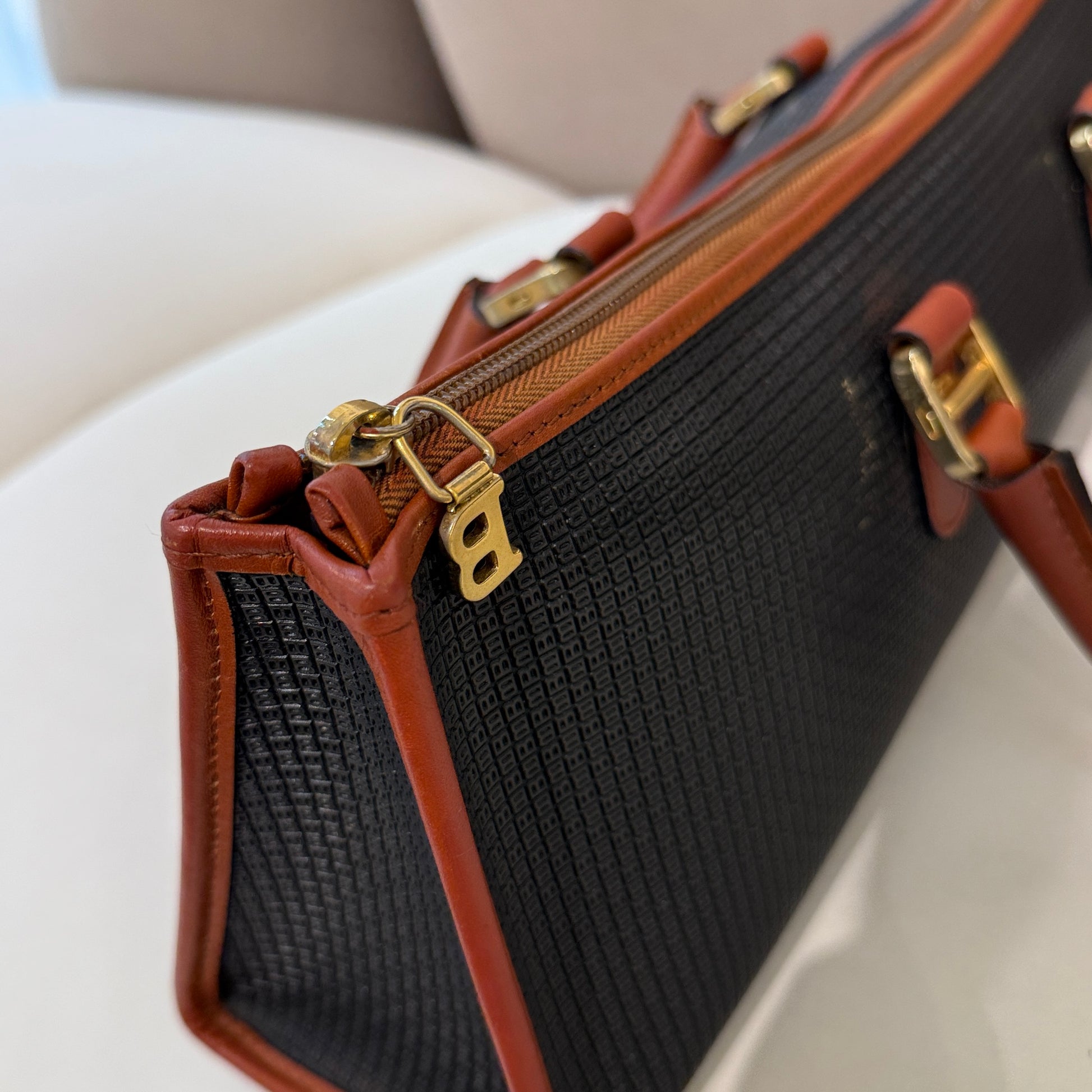This Vintage Bally Rectangular Shoulder Bag Stands Out With Its Extremely Rare Horizontal Boxy Silhouette, Crafted In Striking Two-Tone Black And Caramel Brown Leather. The Structured Design Evokes A Timeless Elegance With A Hint Of Nostalgic Charm.