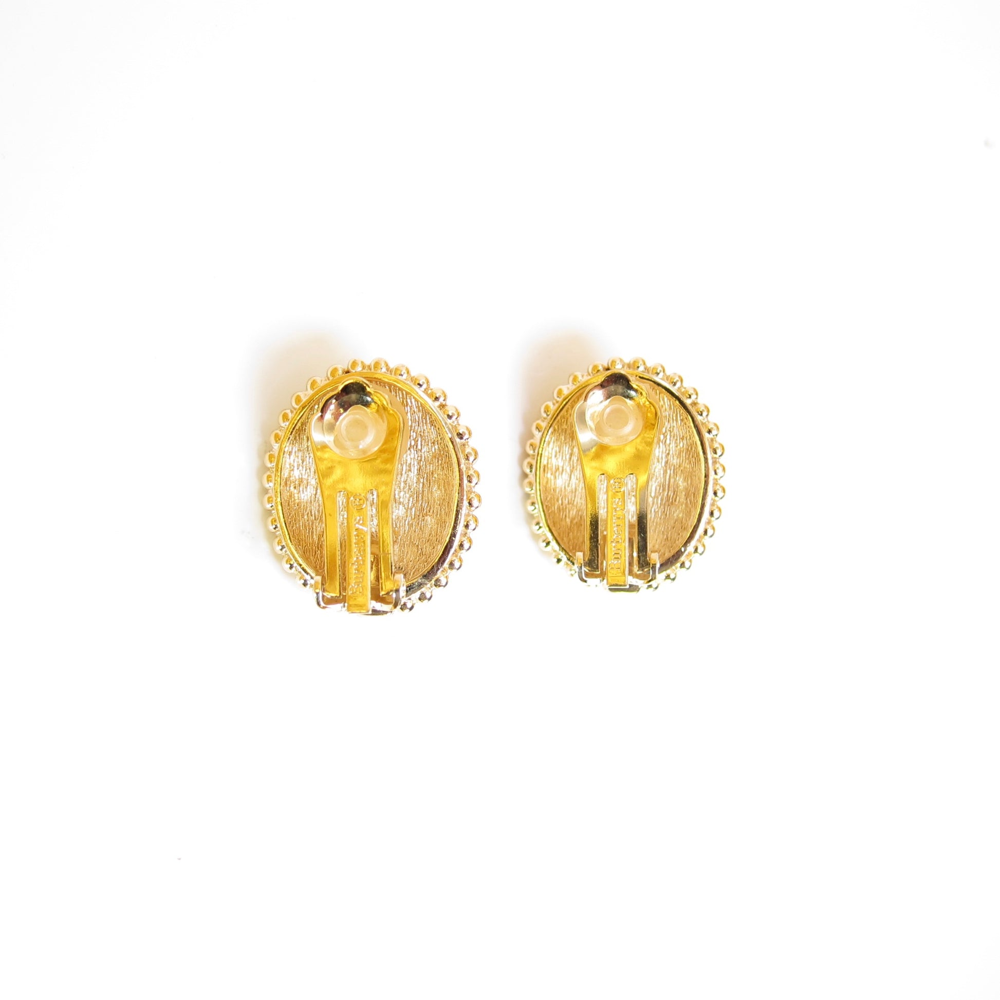 Burberry Vintage Oval Pearl and Dark Blue Golden Clip-on Earrings