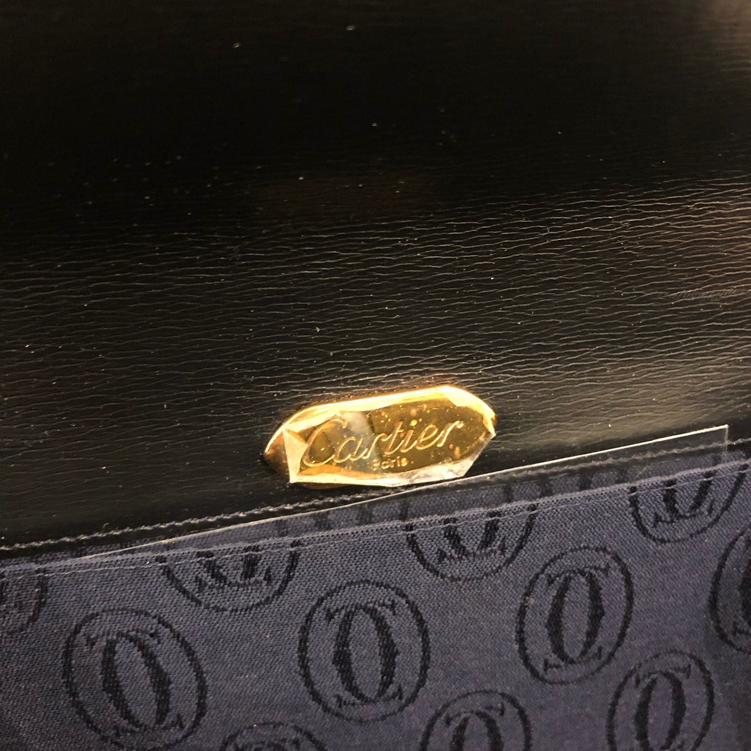 Cartier Vintage Sapphire Line Black Leather Shoulder Bag