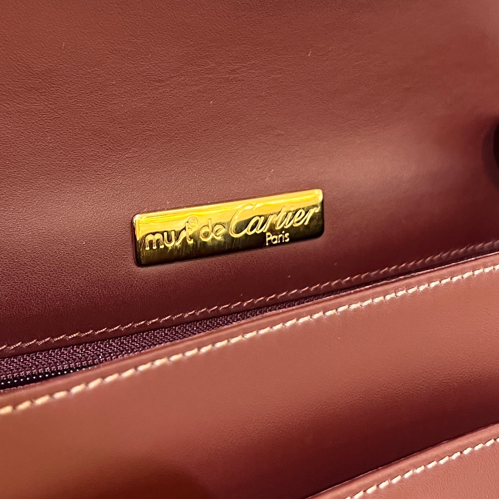 Cartier Vintage Mast Line Bordeaux Leather Shoulder Bag