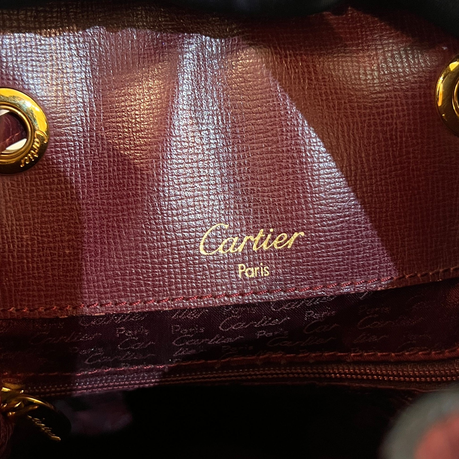 Cartier Vintage Must De Cartier Bordeaux Leather Drawstring Shoulder Bag