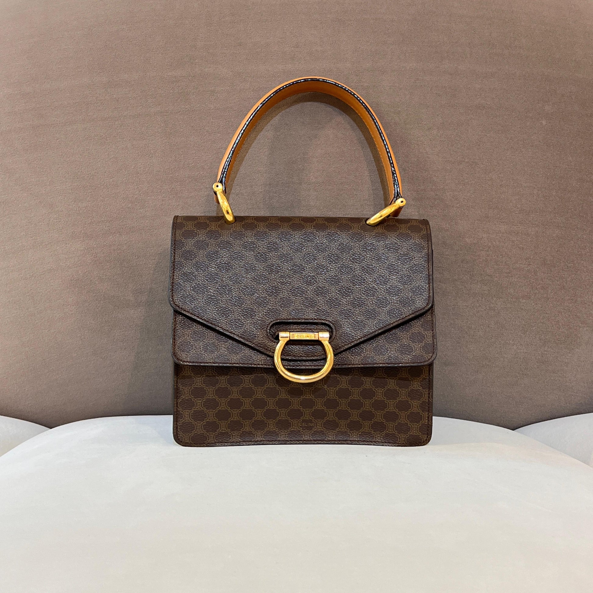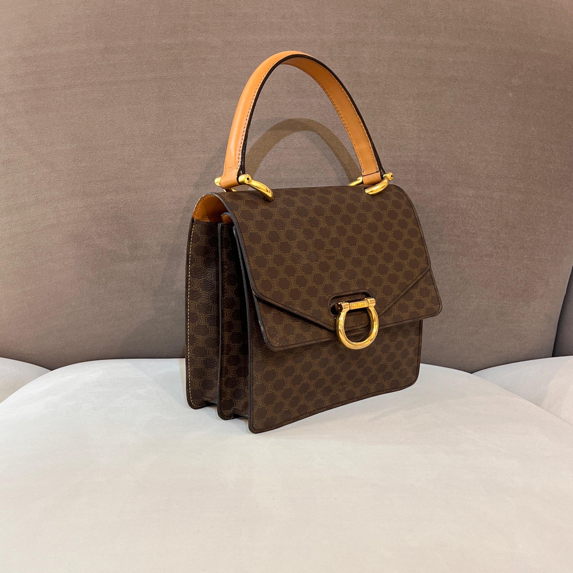 Celine Vintage Macadam Canvas Brown Leather Top Handle Bag
