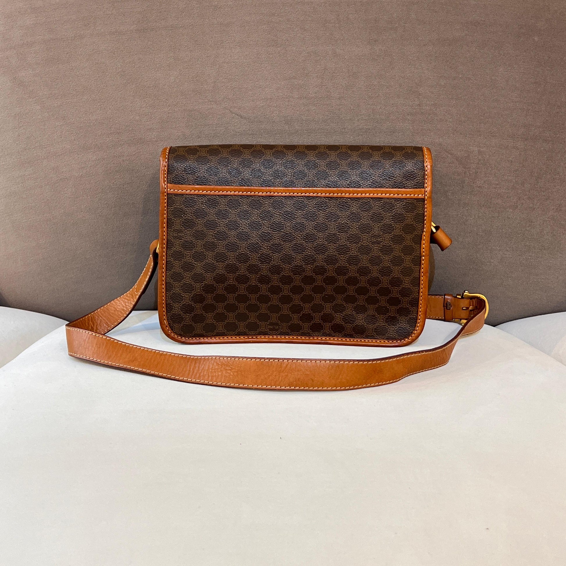 Celine Vintage Macadam Brown Canvas Shoulder Bag With Gold Hardware