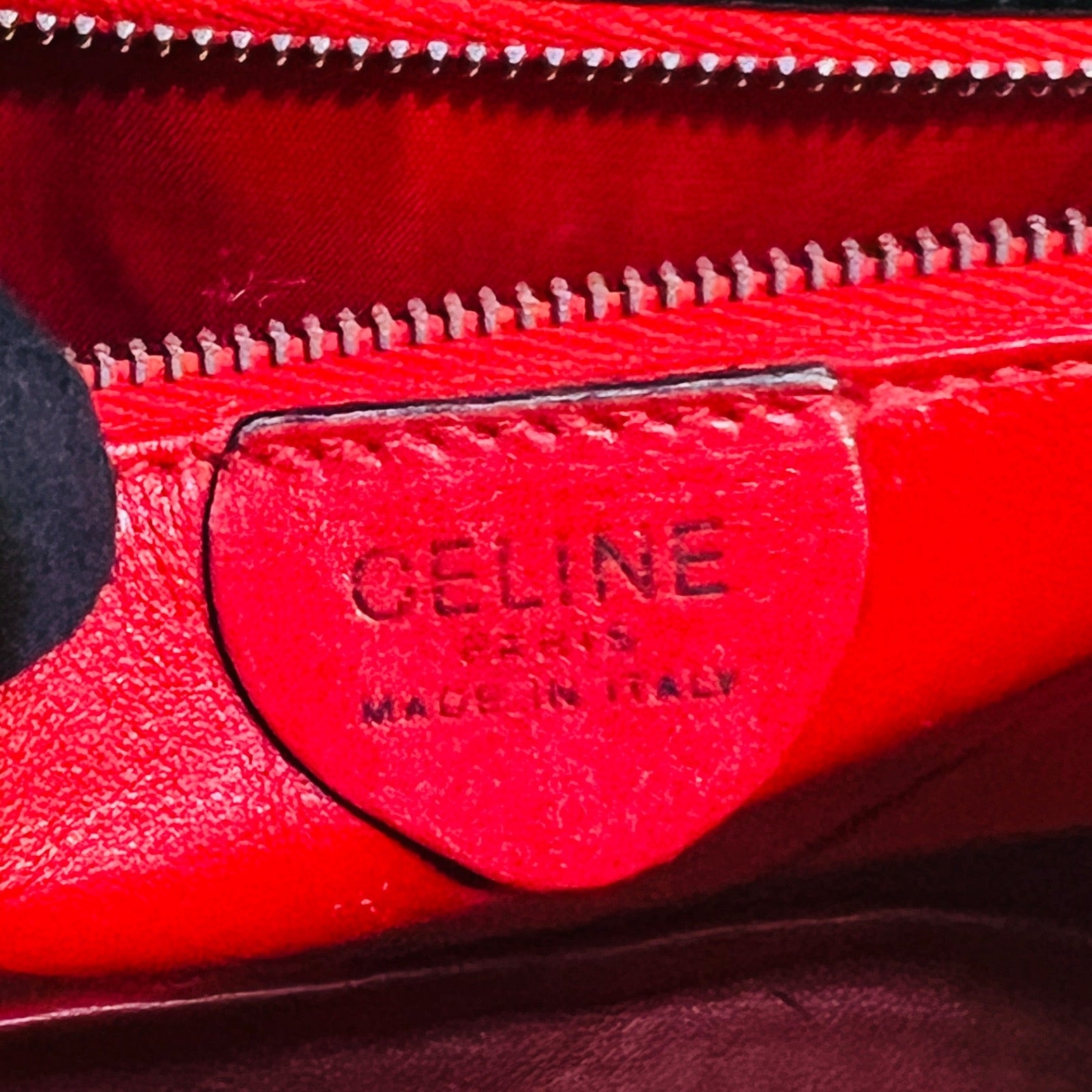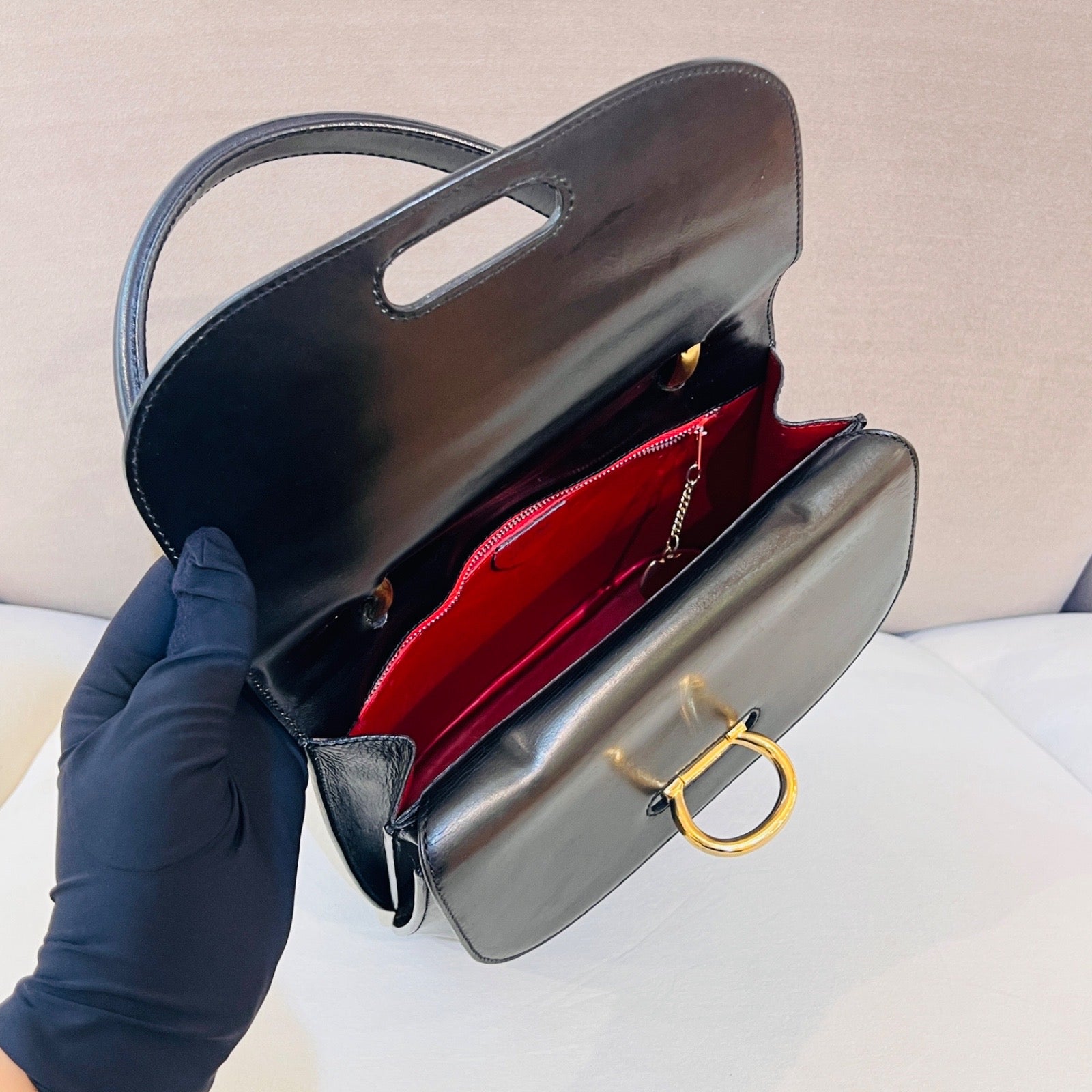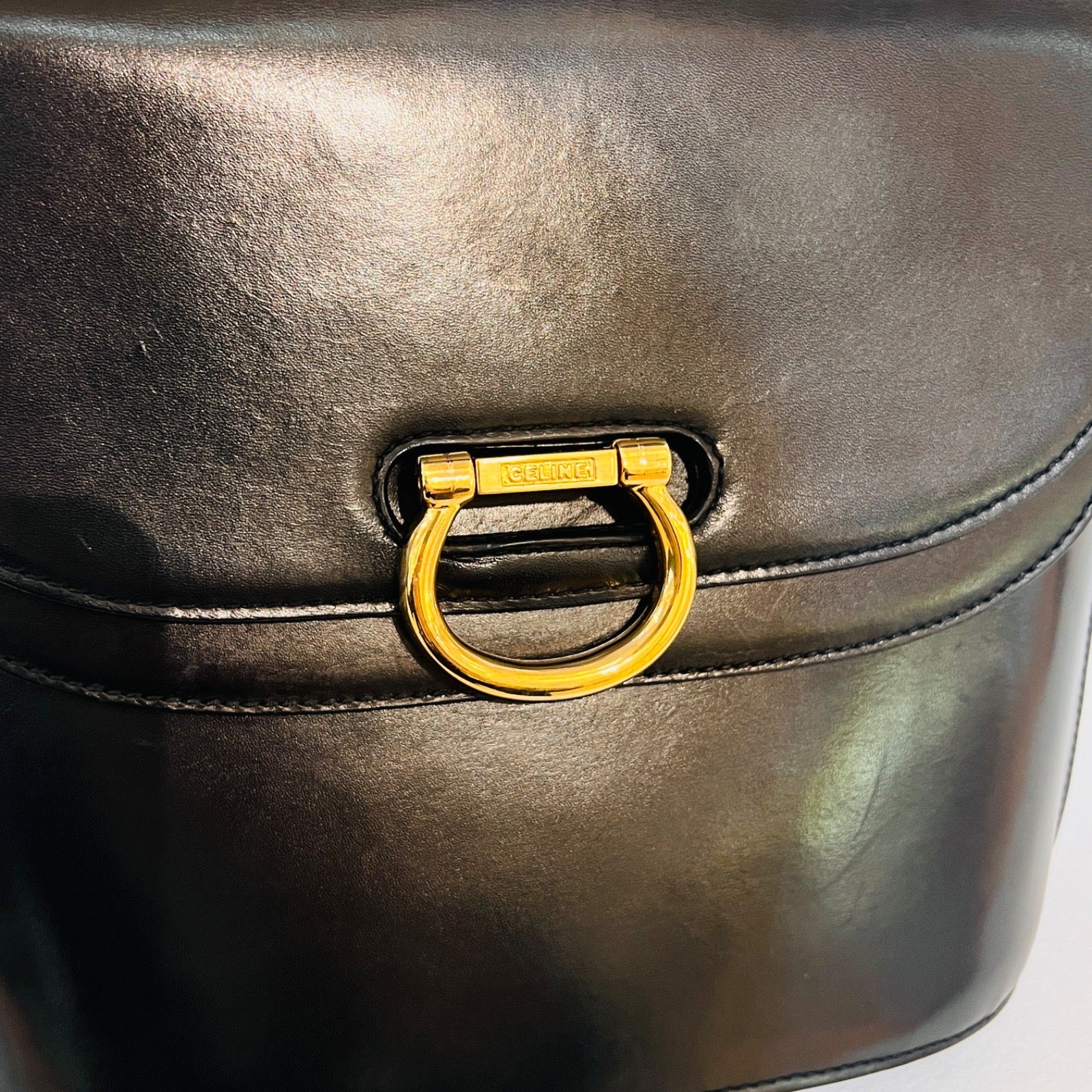Celine Vintage Black Leather Gancini Closure Top Handle Bag