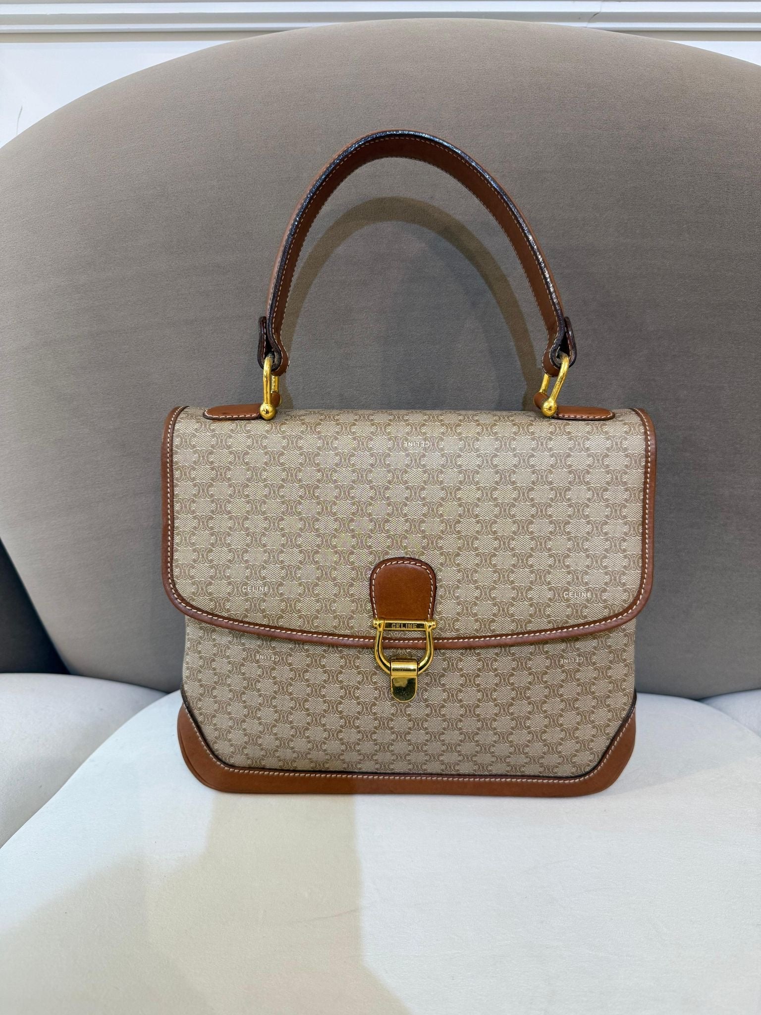 以經典 Macadam 帆布結合柔軟棕色皮革飾邊,這款 Celine 手袋搭配金色扣飾,展現中古韻味。袋型挺身,容量適中,兼具時尚與實用。