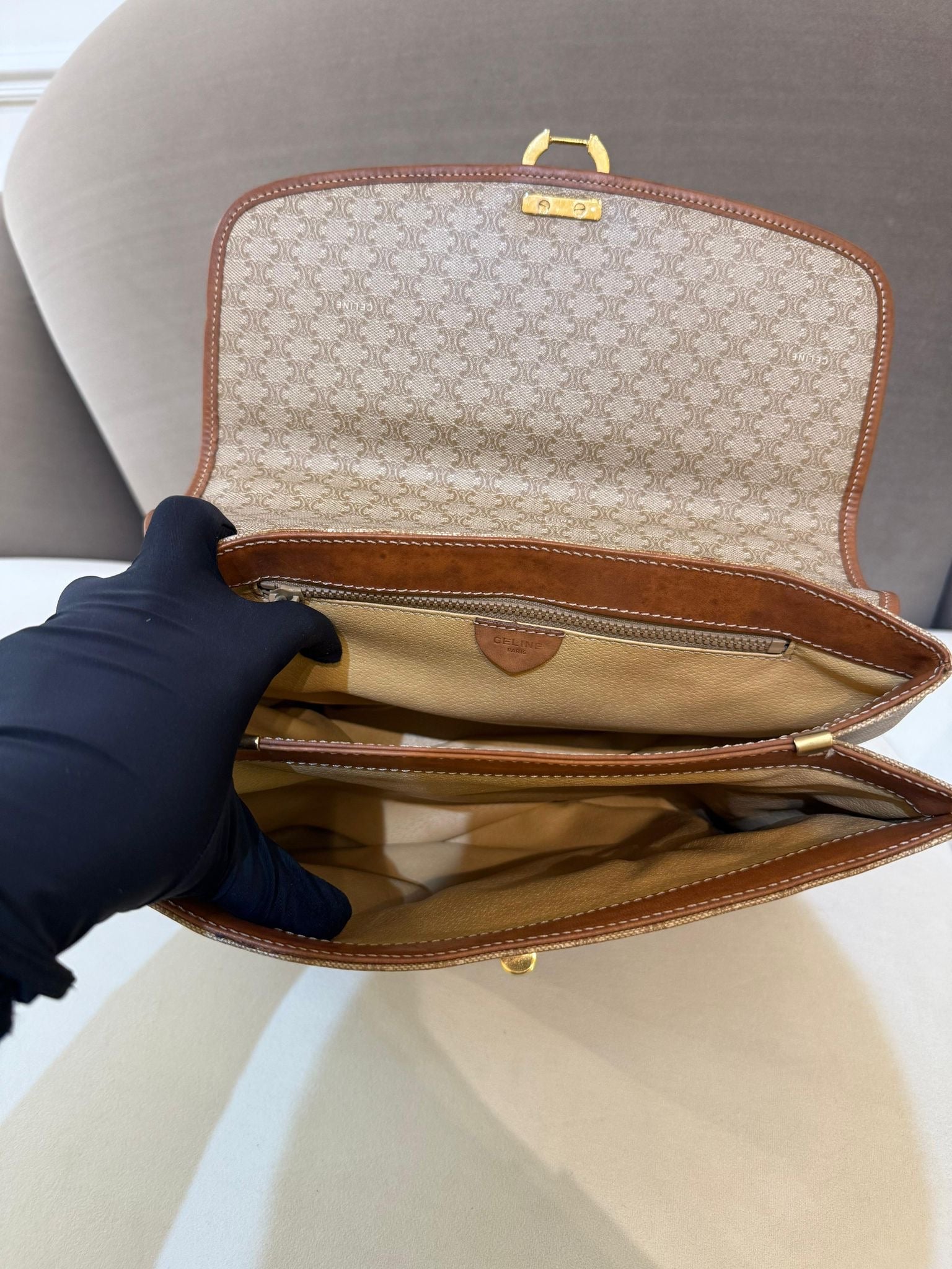Celine Vintage Macadam Canvas Brown Leather Handbag