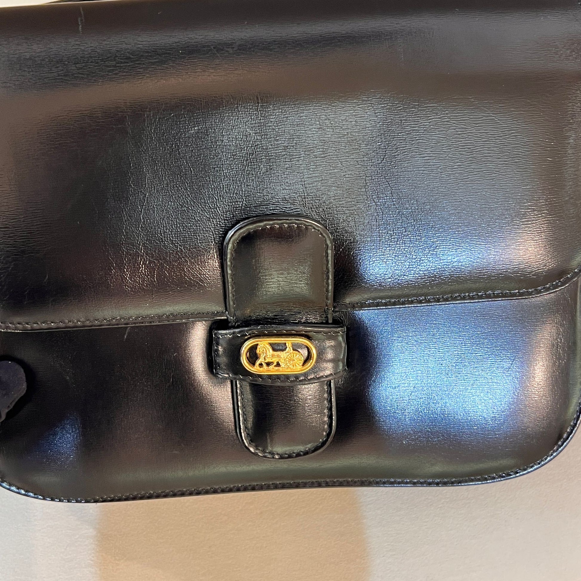 Celine Vintage Horse Carriage Black Leather Shoulder Bag