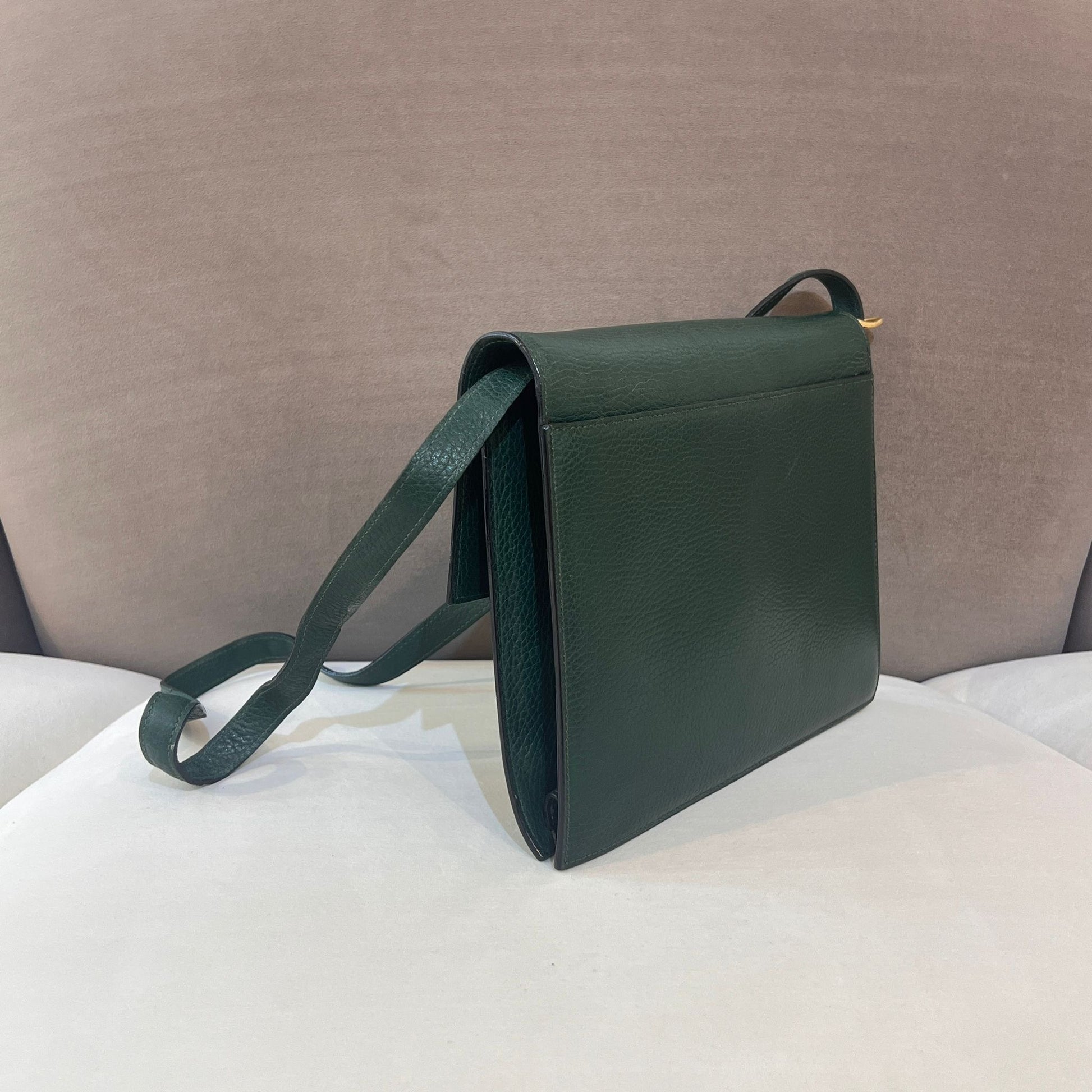Celine Vintage Circle Logo Forest Green Leather Shoulder Bag