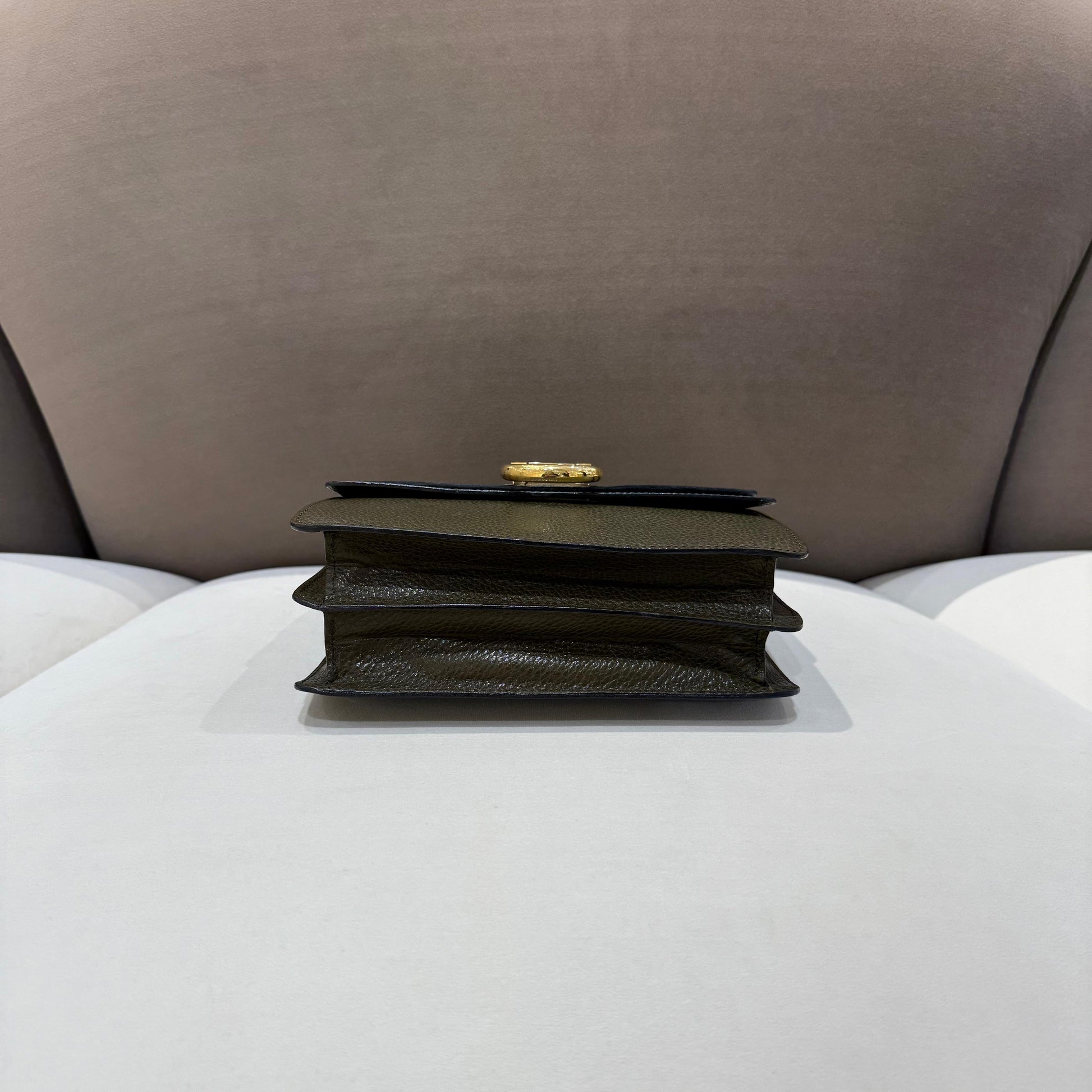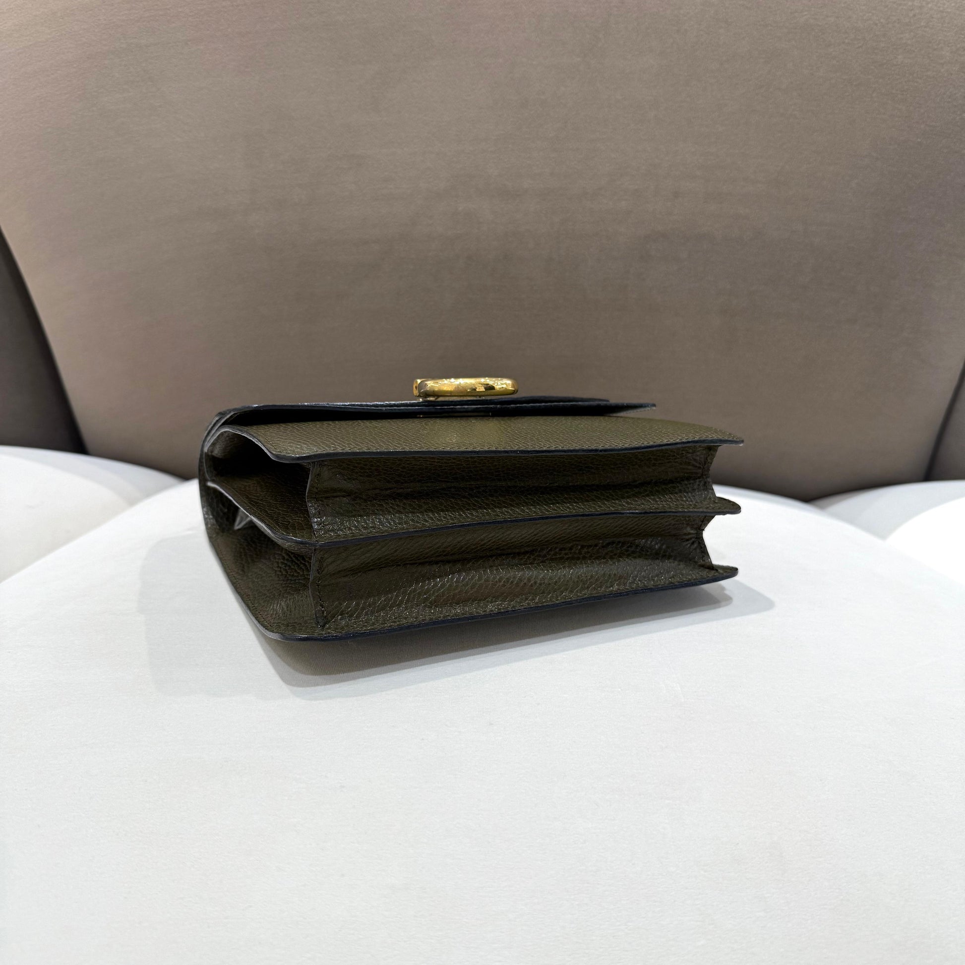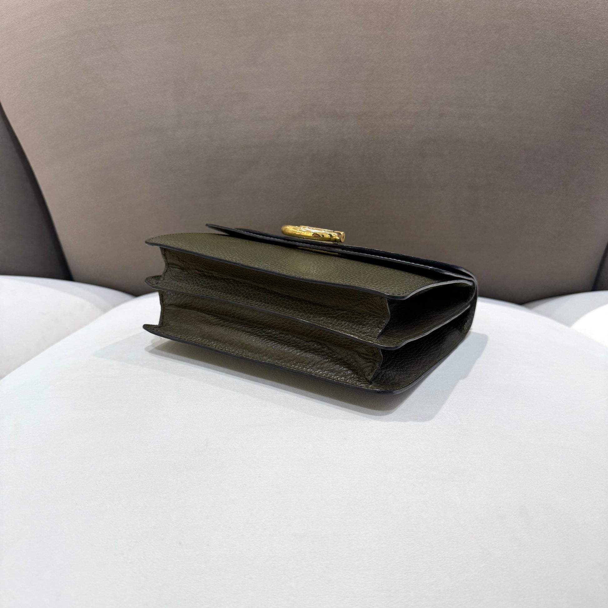 高雅橄欖綠色皮革呈現俐落而挺身的經典輪廓