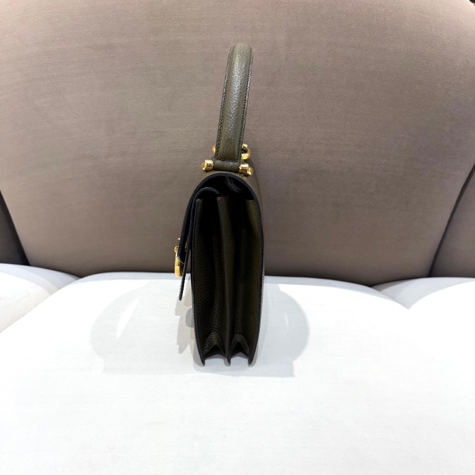 Celine Vintage Olive Green Leather Ring Clasp Top Handle Bag