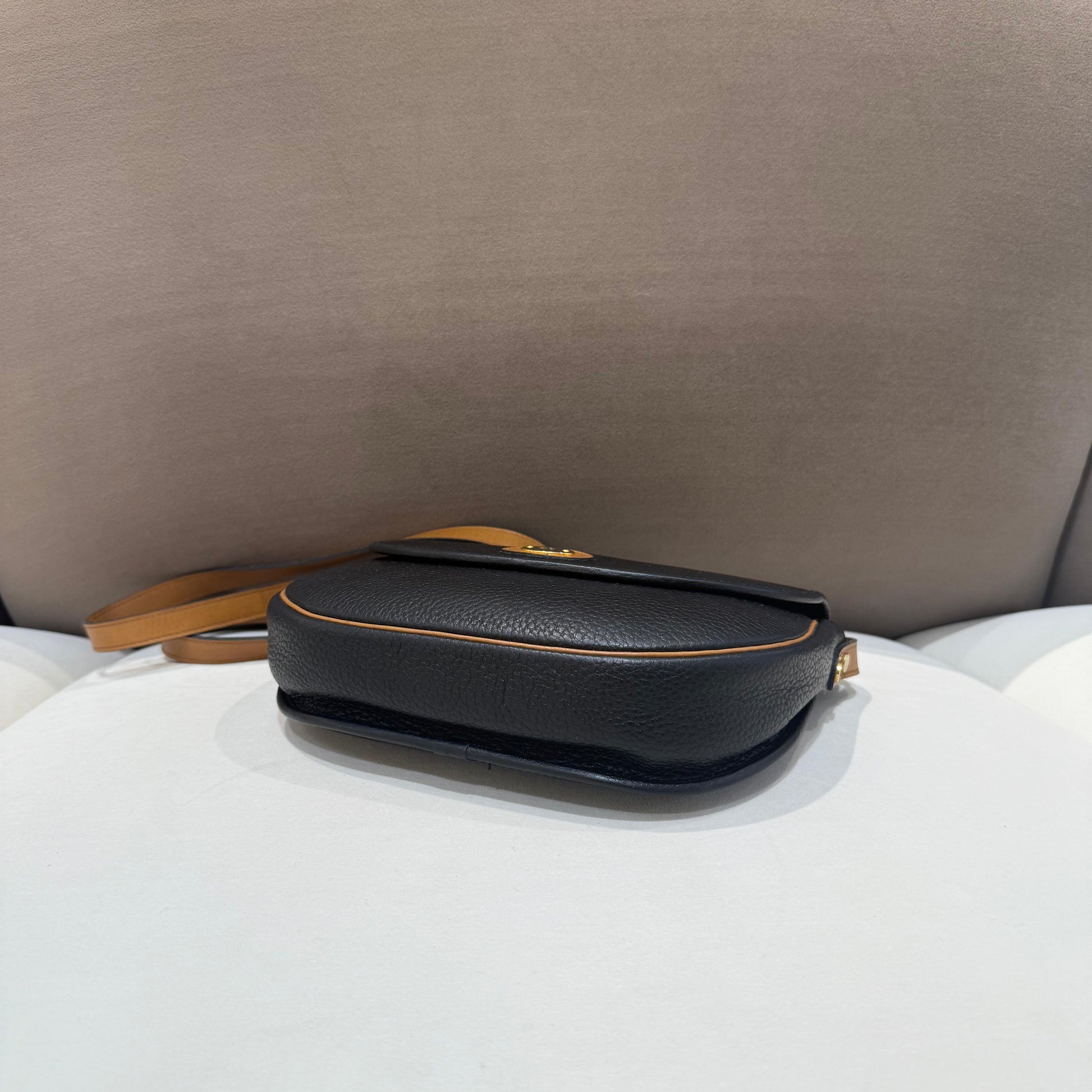 Grained Black Leather With Rounded Saddle-Inspired Silhouette
