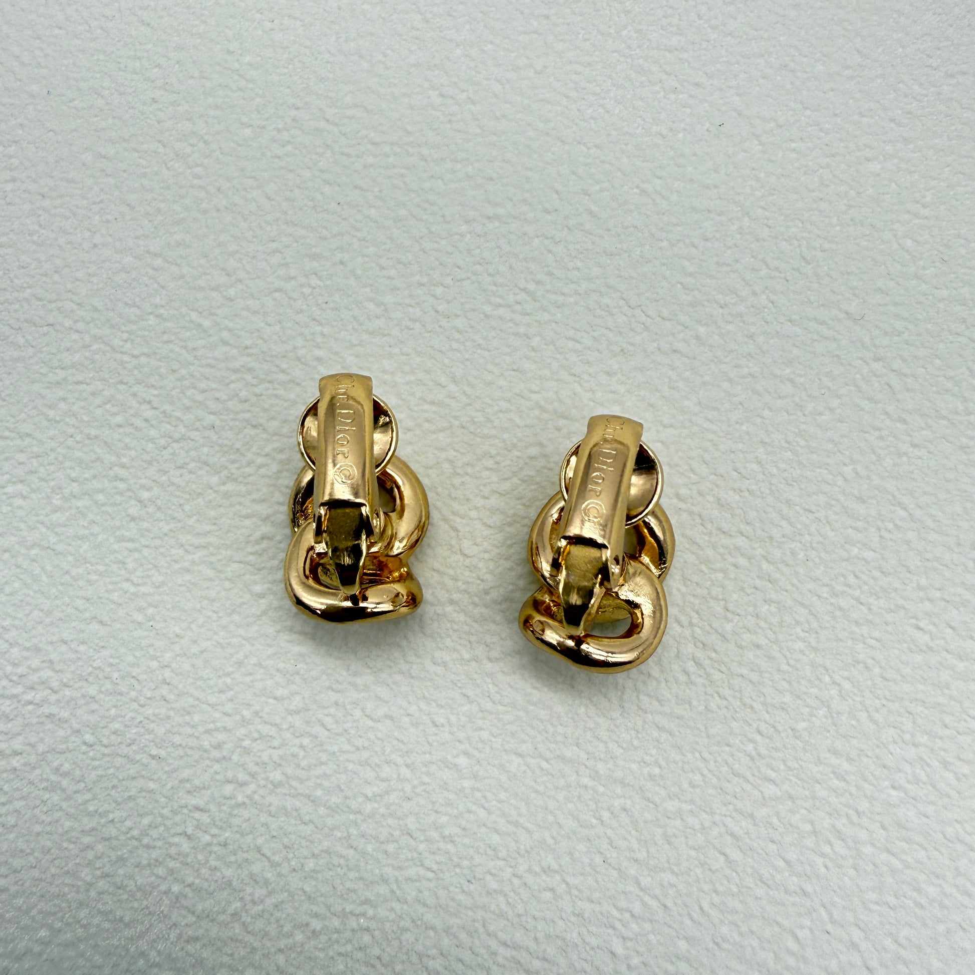 Christian Dior Vintage Link Rhinestone Golden Clip-on Earrings