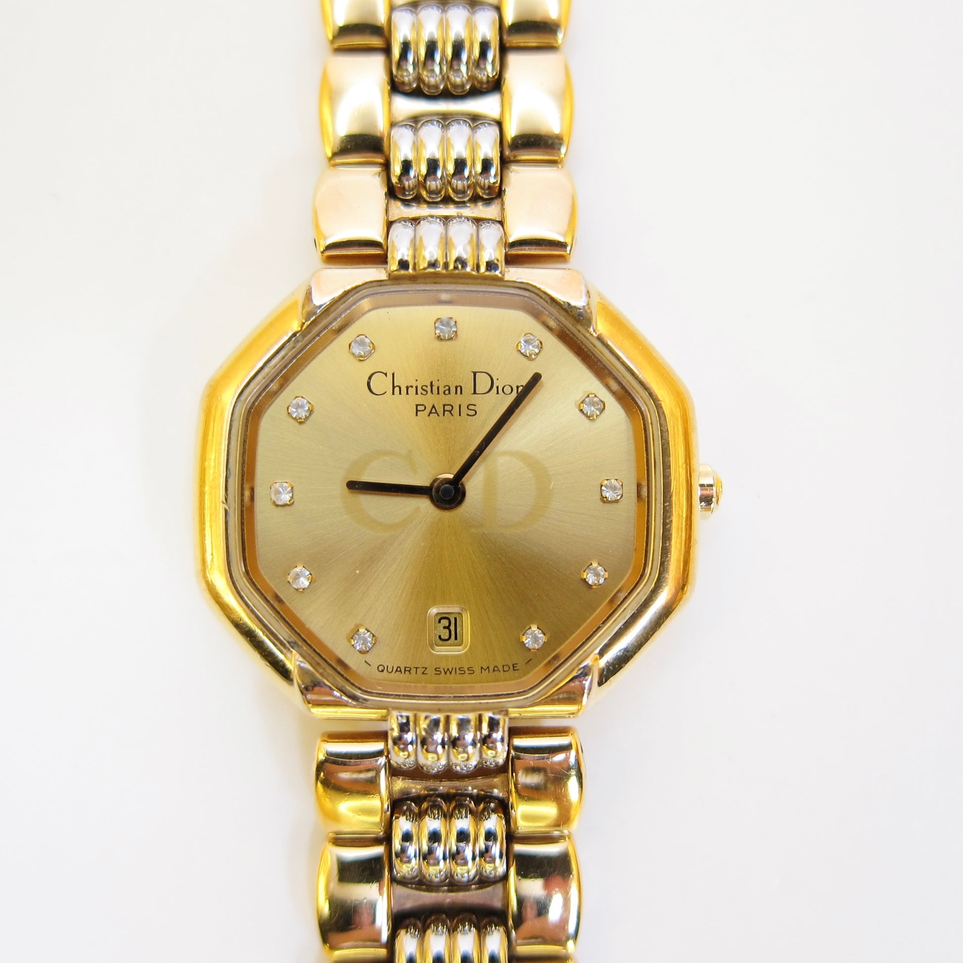 Christian Dior Vintage Octagon Golden Face Diamond Dial Two Tone Watch