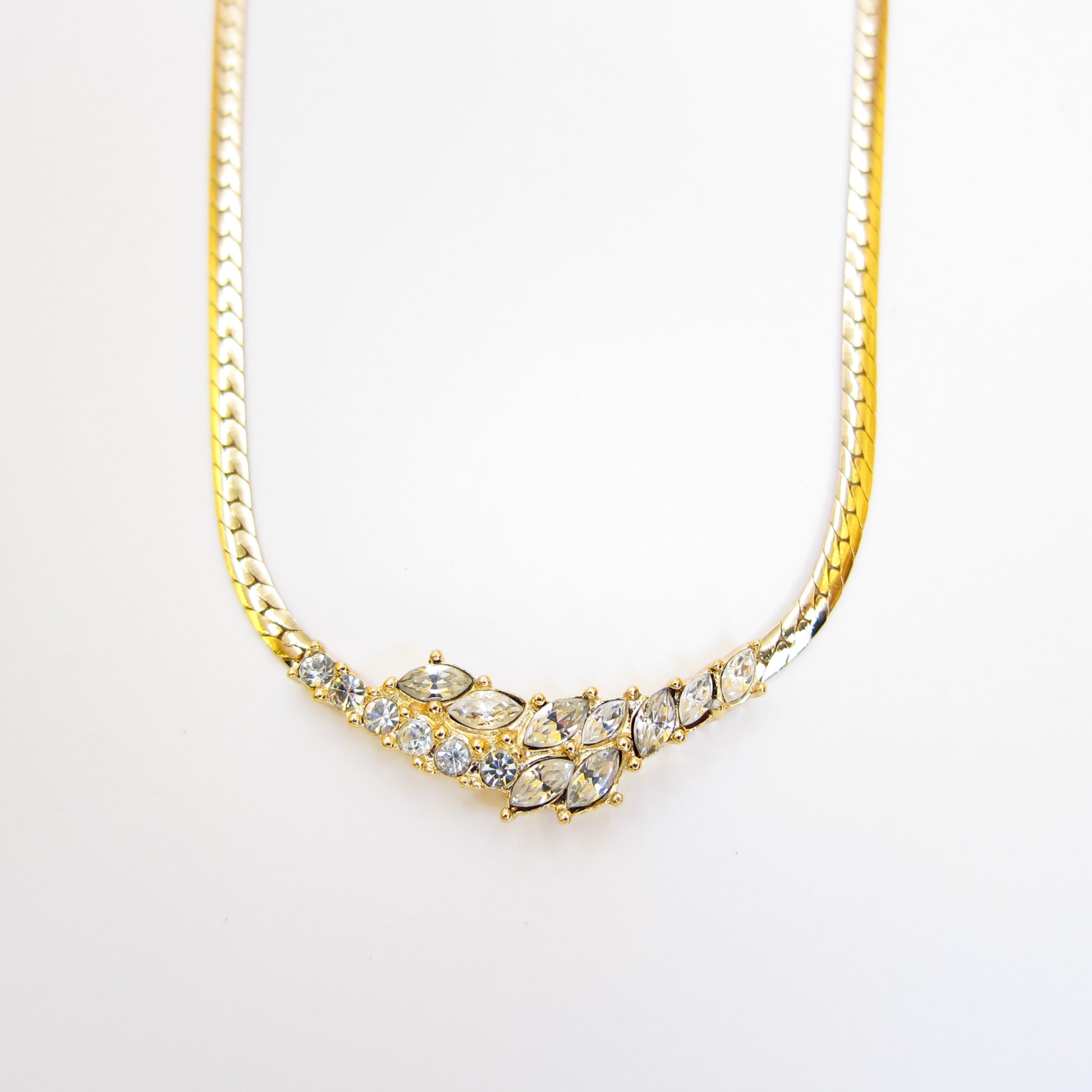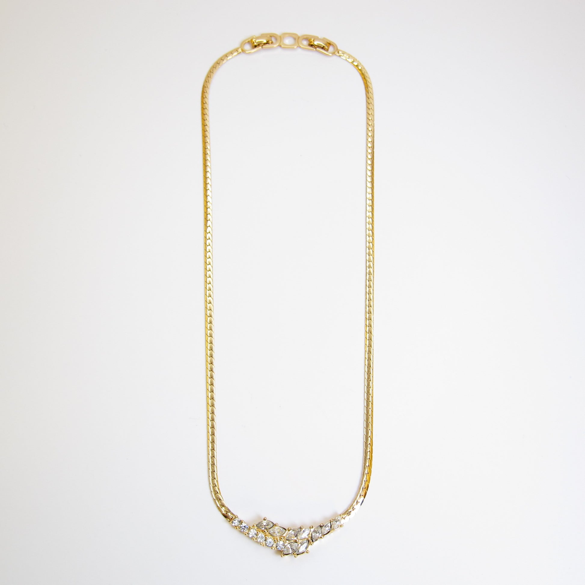 Christian Dior Vintage Stylish Rhinestone Pendant Golden Necklace