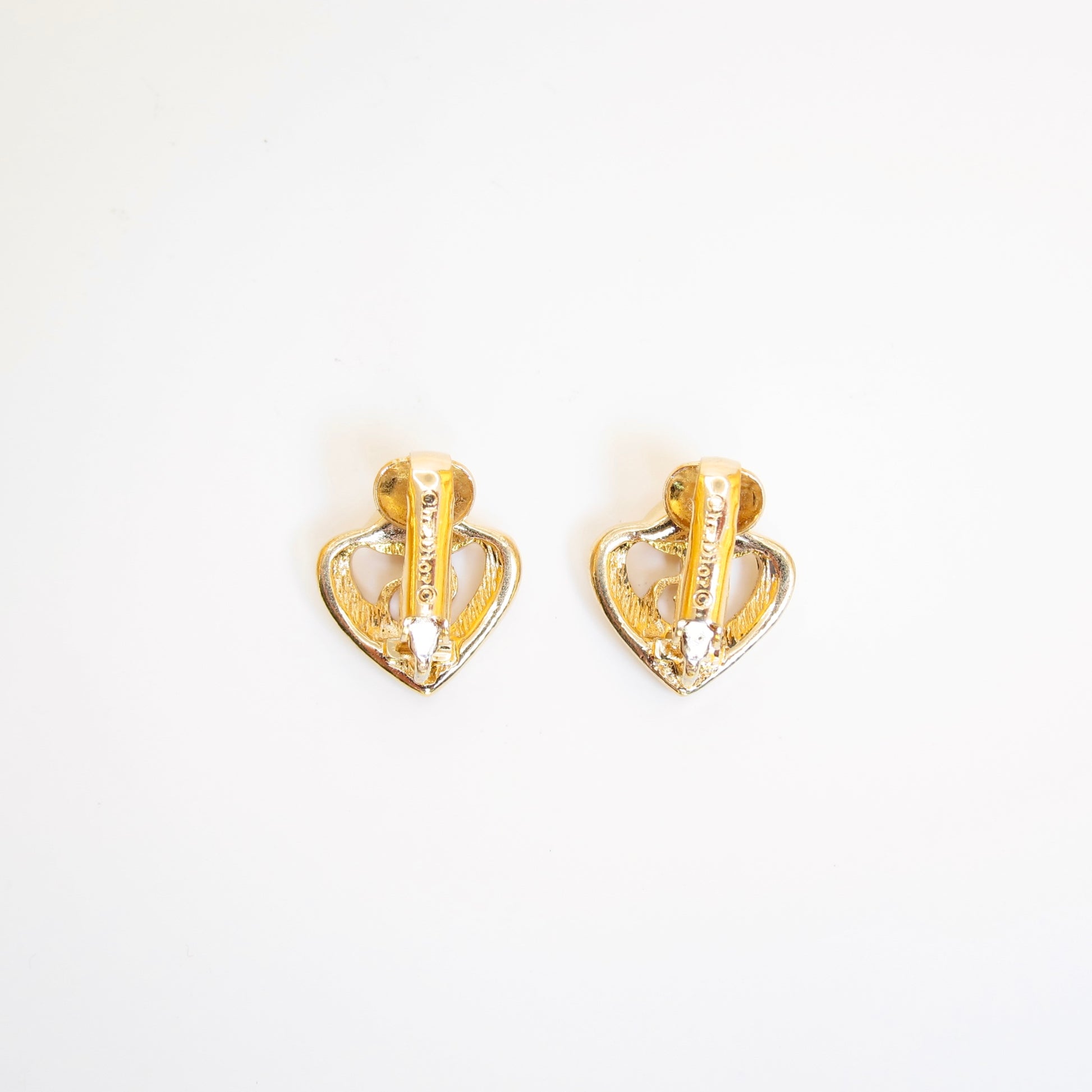 Christian Dior Vintage CD Logo in Heart Shape Golden Clip-on Earrings