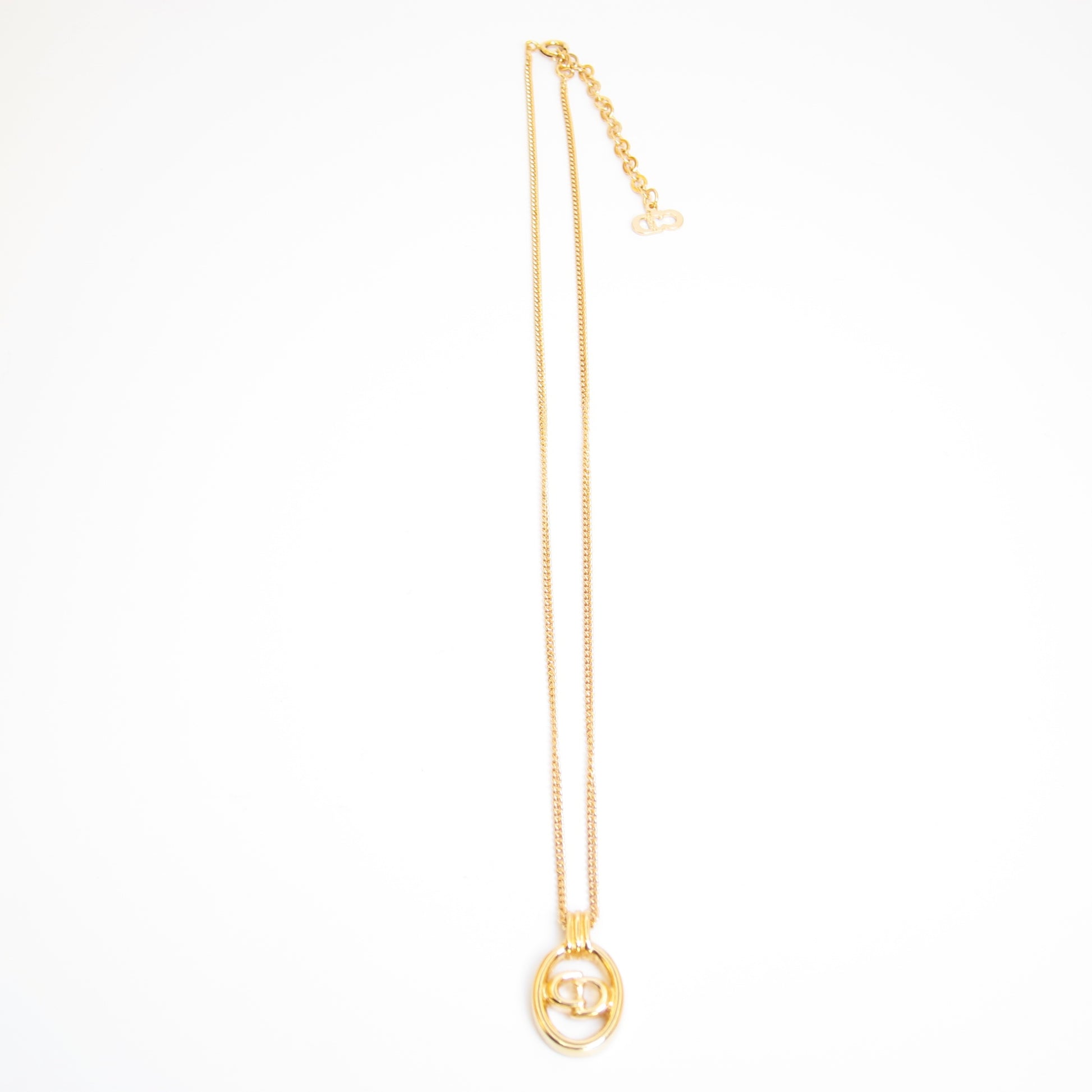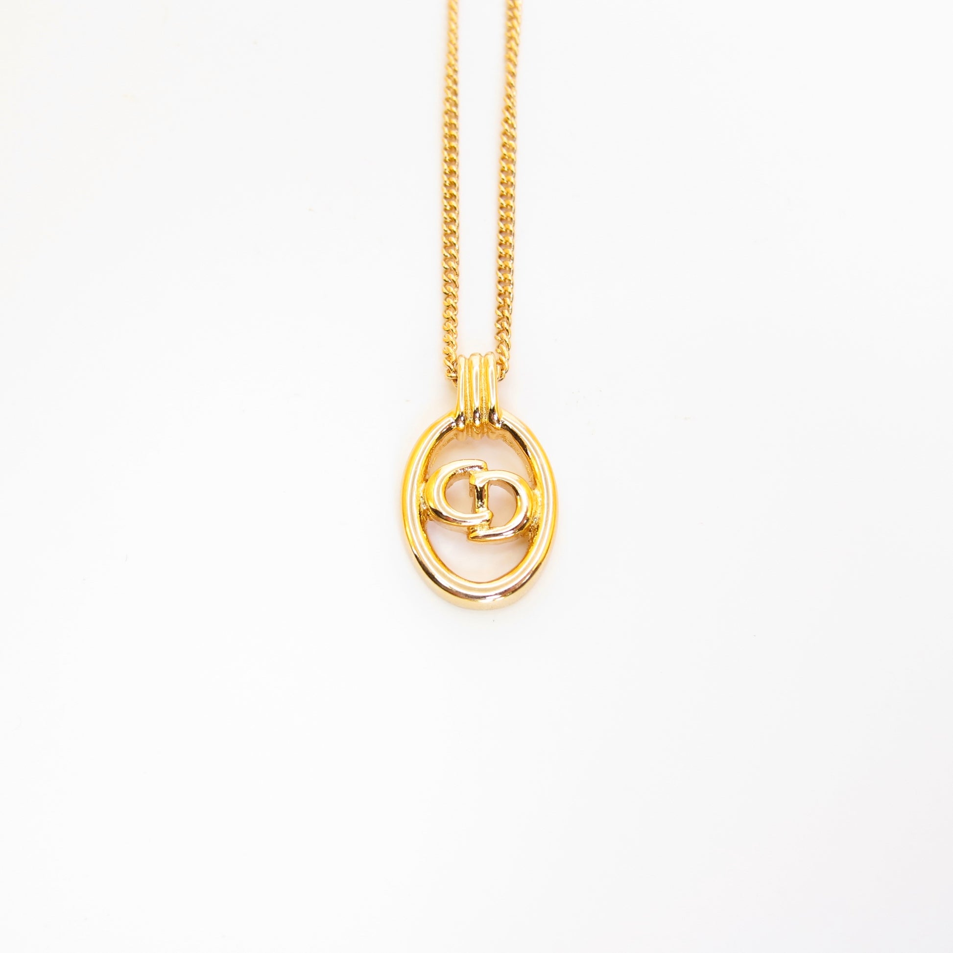 Christian Dior Vintage CD Logo in Oval Shape Golden Necklace