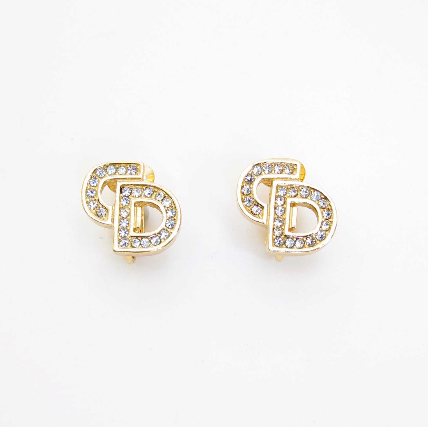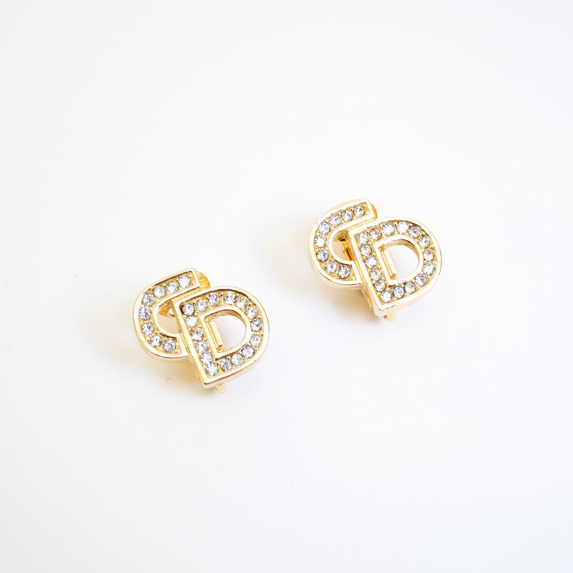 Christian Dior Vintage CD Logo with Rhinestone Golden Clip-on Earrings