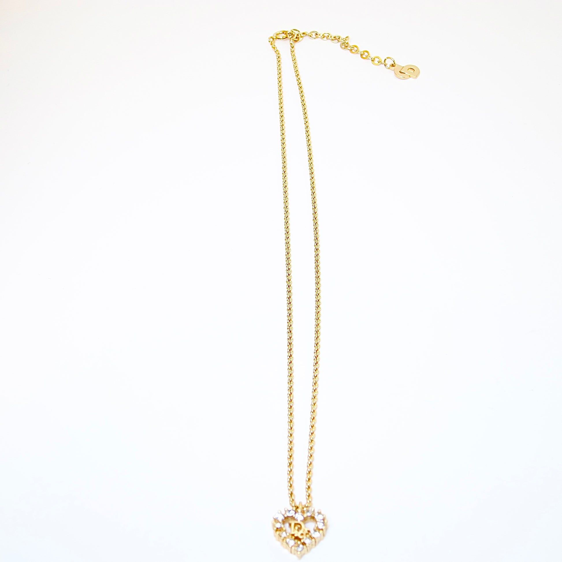 Christian Dior Vintage Dior Logo in Heart Shape with Rhinestone Golden Necklace