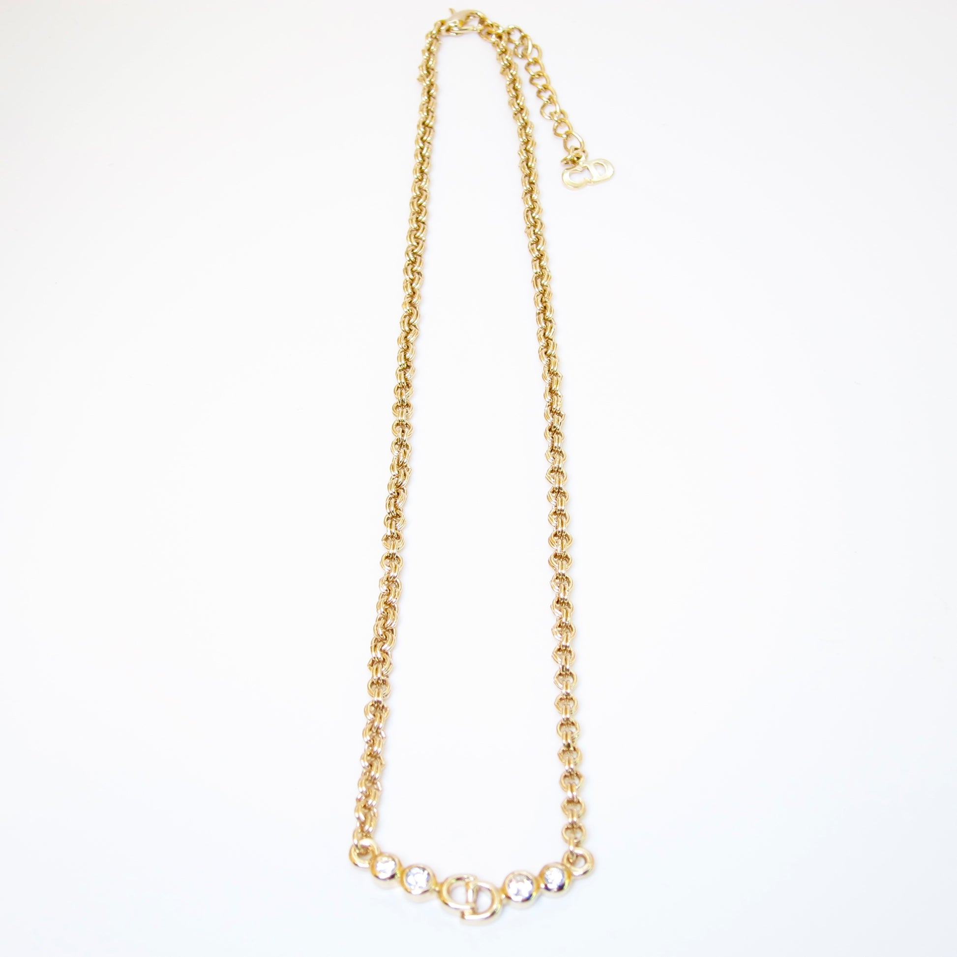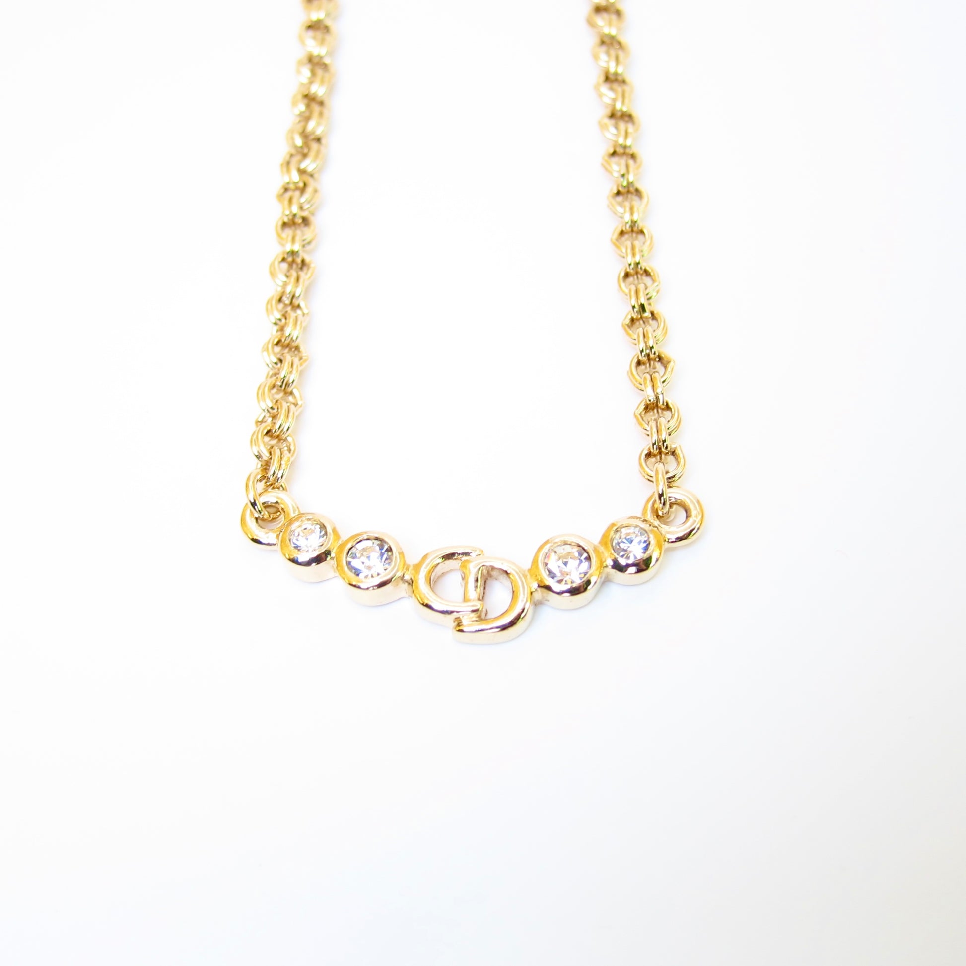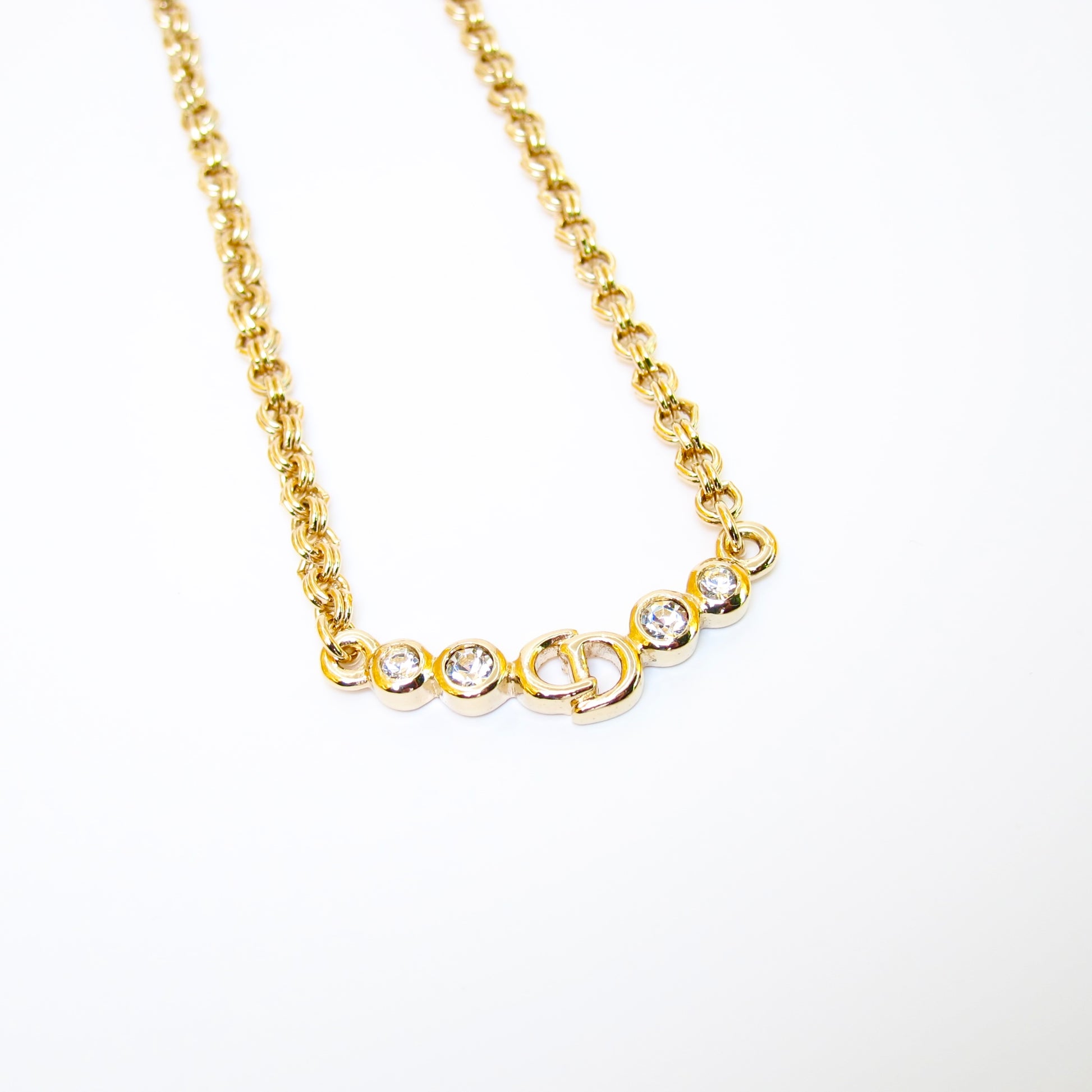 Christian Dior Vintage CD Logo and Rhinestone Golden Necklace