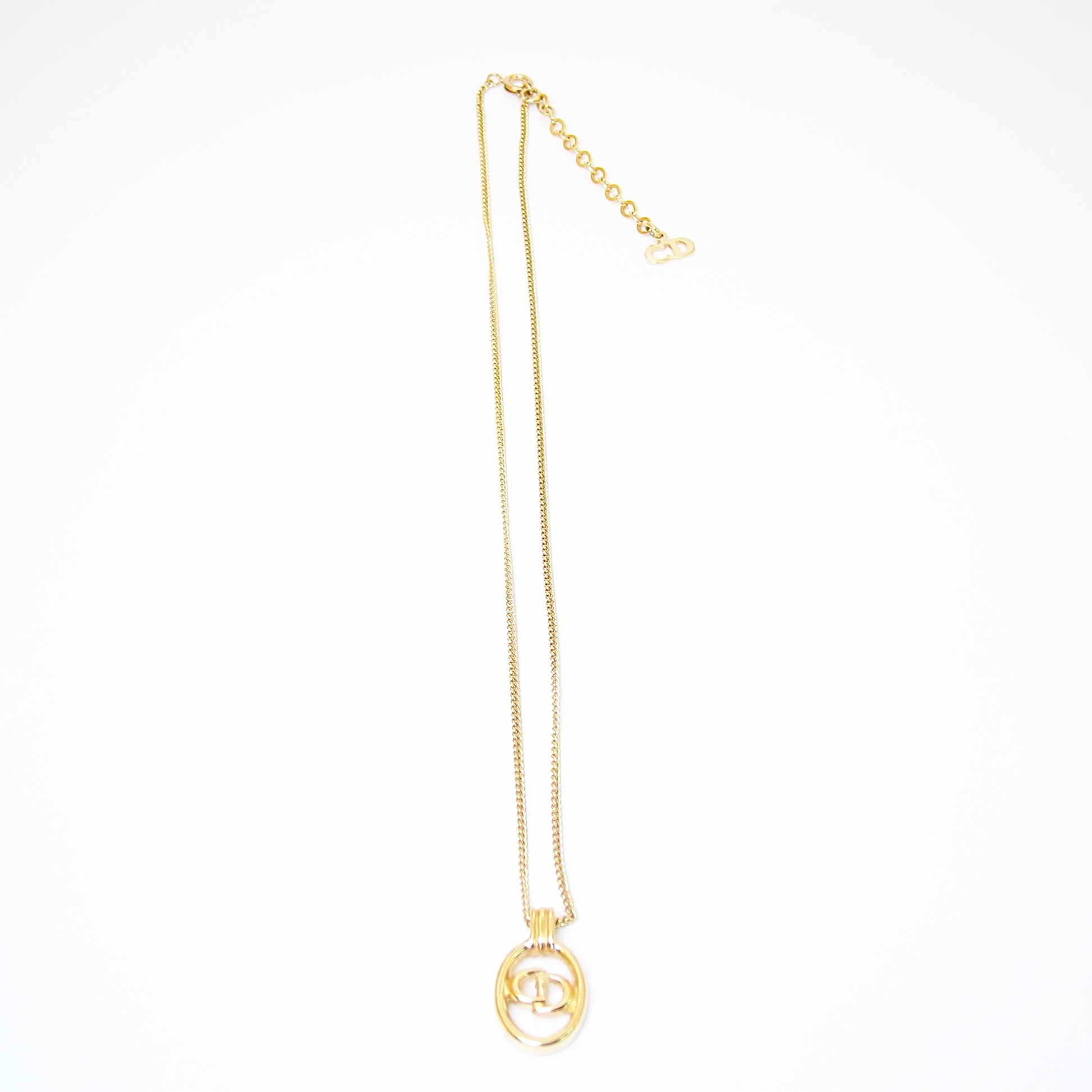Christian Dior Vintage CD Logo in Oval Shape Golden Necklace