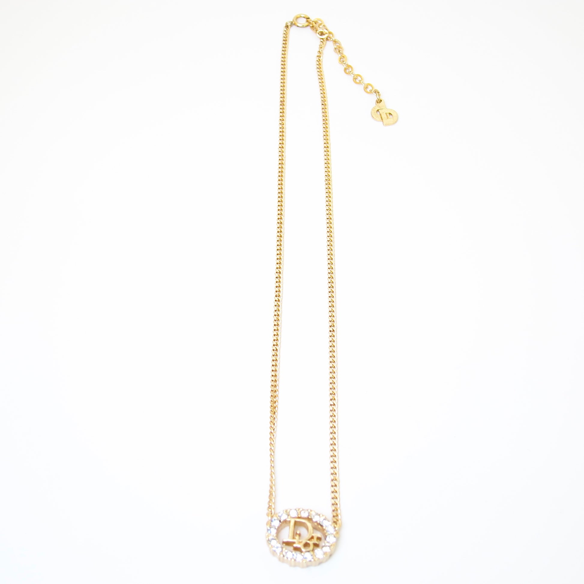 Christian Dior Vintage Dior Logo in Oval Shape with Rhinestone Golden Necklace