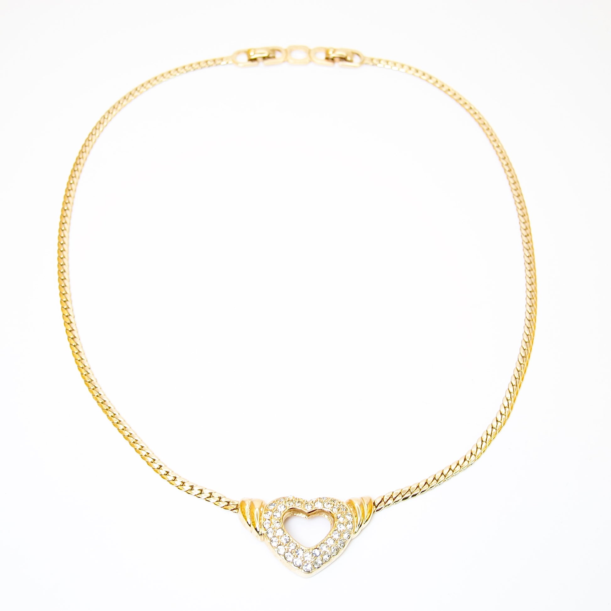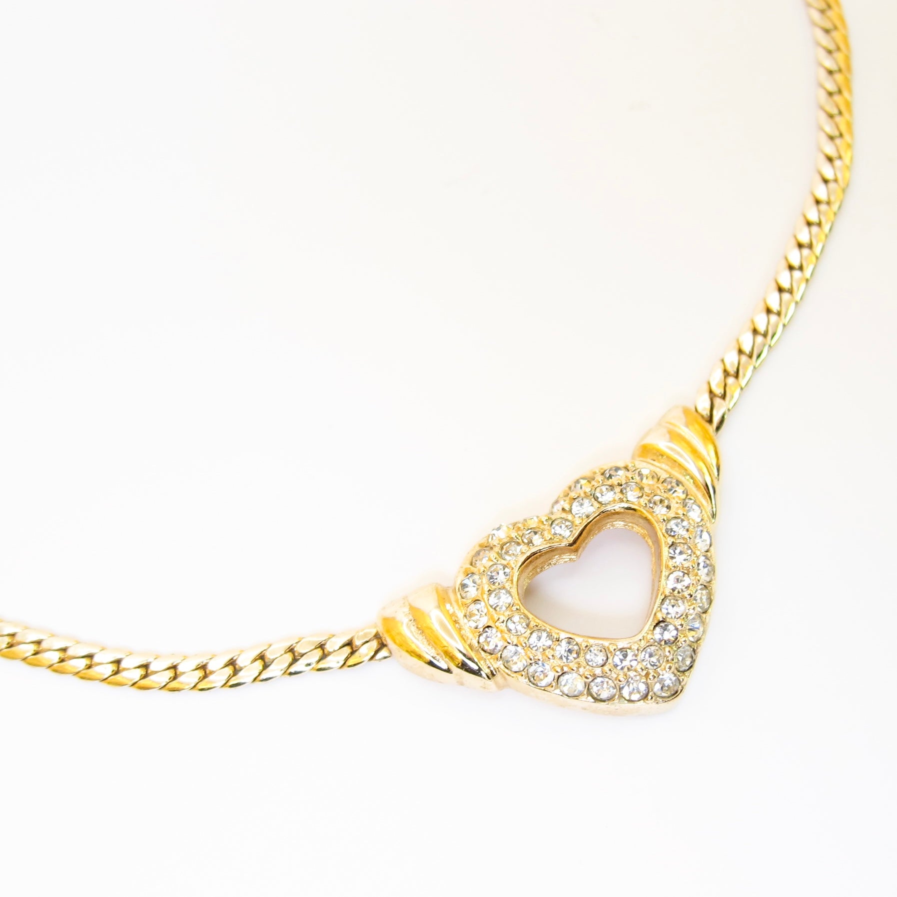 Christian Dior Vintage Heart Motif with Rhinestone Golden Necklace